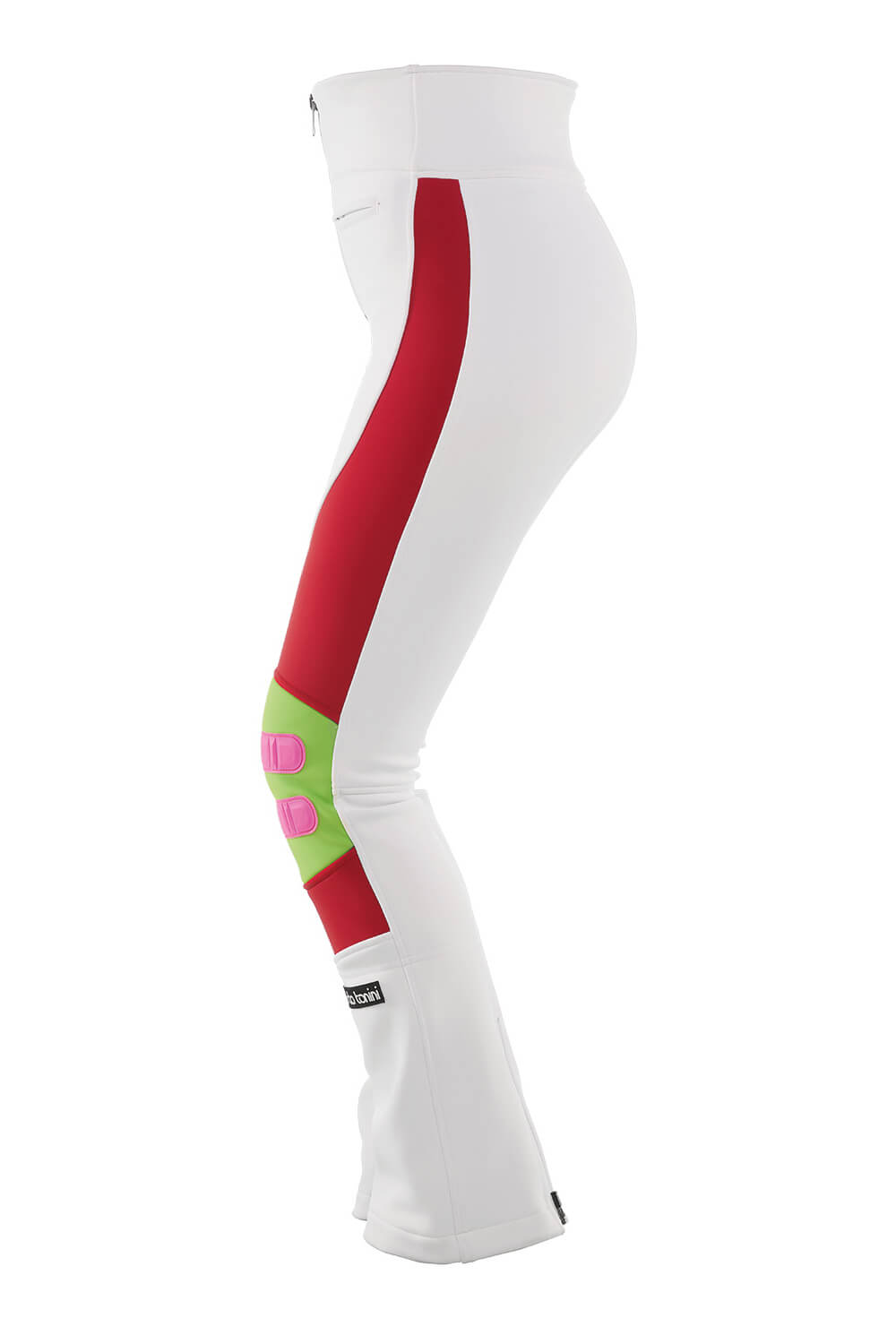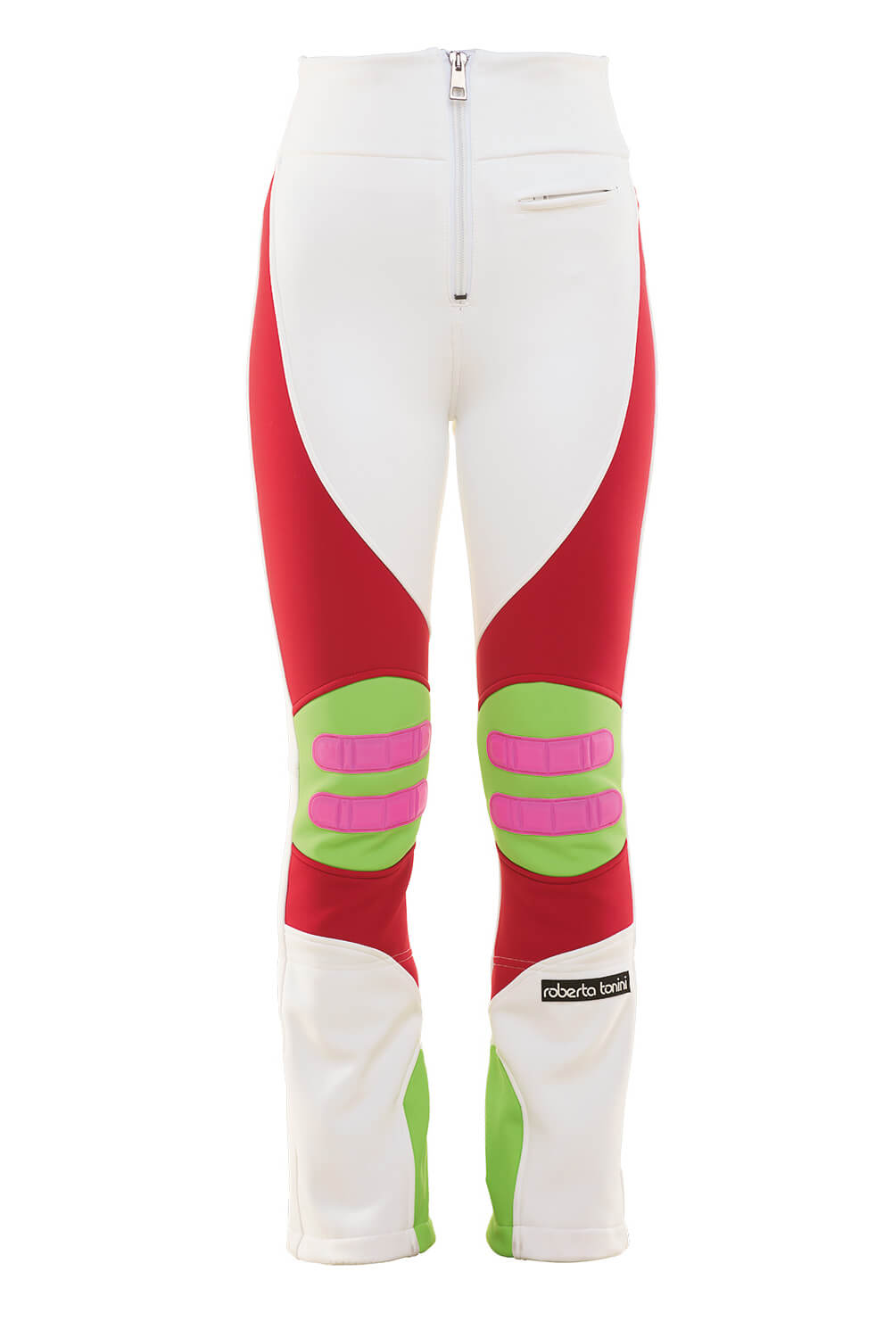 Ski pants with reinforcements patches on the knees. This high waist trousers with a zipper on the front are equipped with detachable straps.